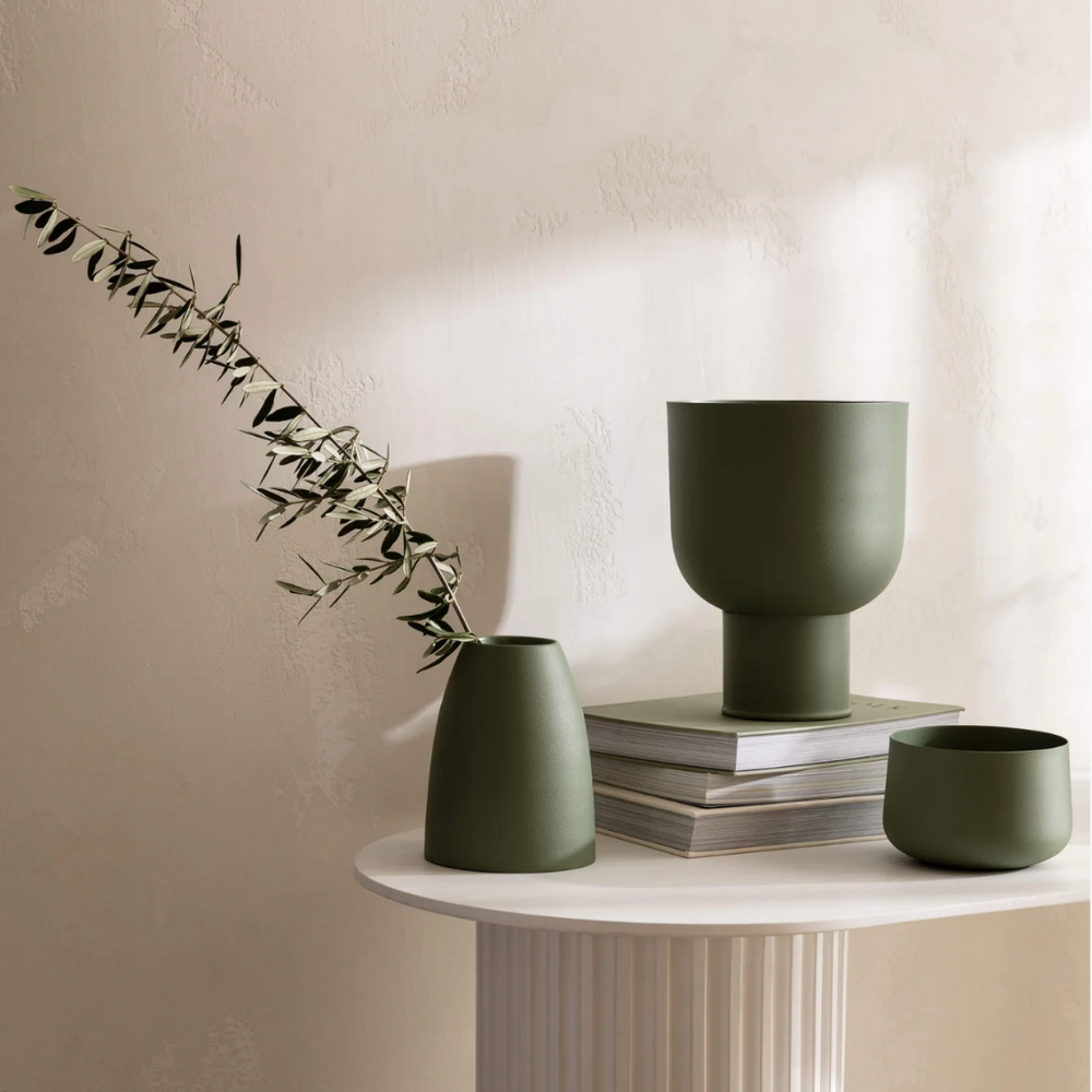 Textural and bold, the Mona range is a unique addition to any home. The Mona Cone Vase celebrates sculptural form with its confident lines and can be paired perfectly with other Mona shapes and sizes. The Mona Vases look stunning displayed alone or styled with flowers, foliage or dried flora. Available in a variety of shapes and sizes, the Mona Vases are made of iron with a matte finish, giving them a sleek, silhouette-like appearance. Mix & match different sizes and colours to create stunning vignettes for your sideboard, mantle or tabletop.