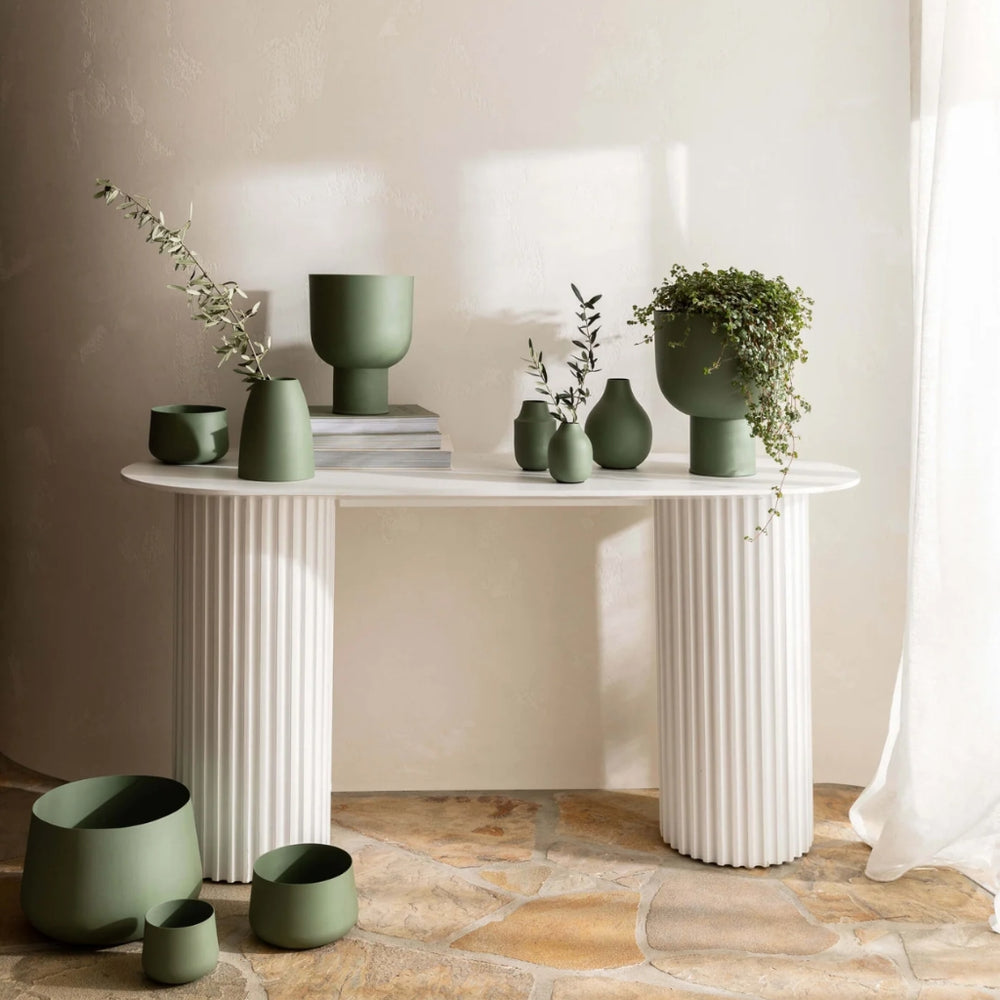 Bring greenery into the home in a modern way with the Mona Planter range. The iron Mona Planter’s beautiful curved lines and matte finish on the outside contrast strikingly with fresh indoor plants.