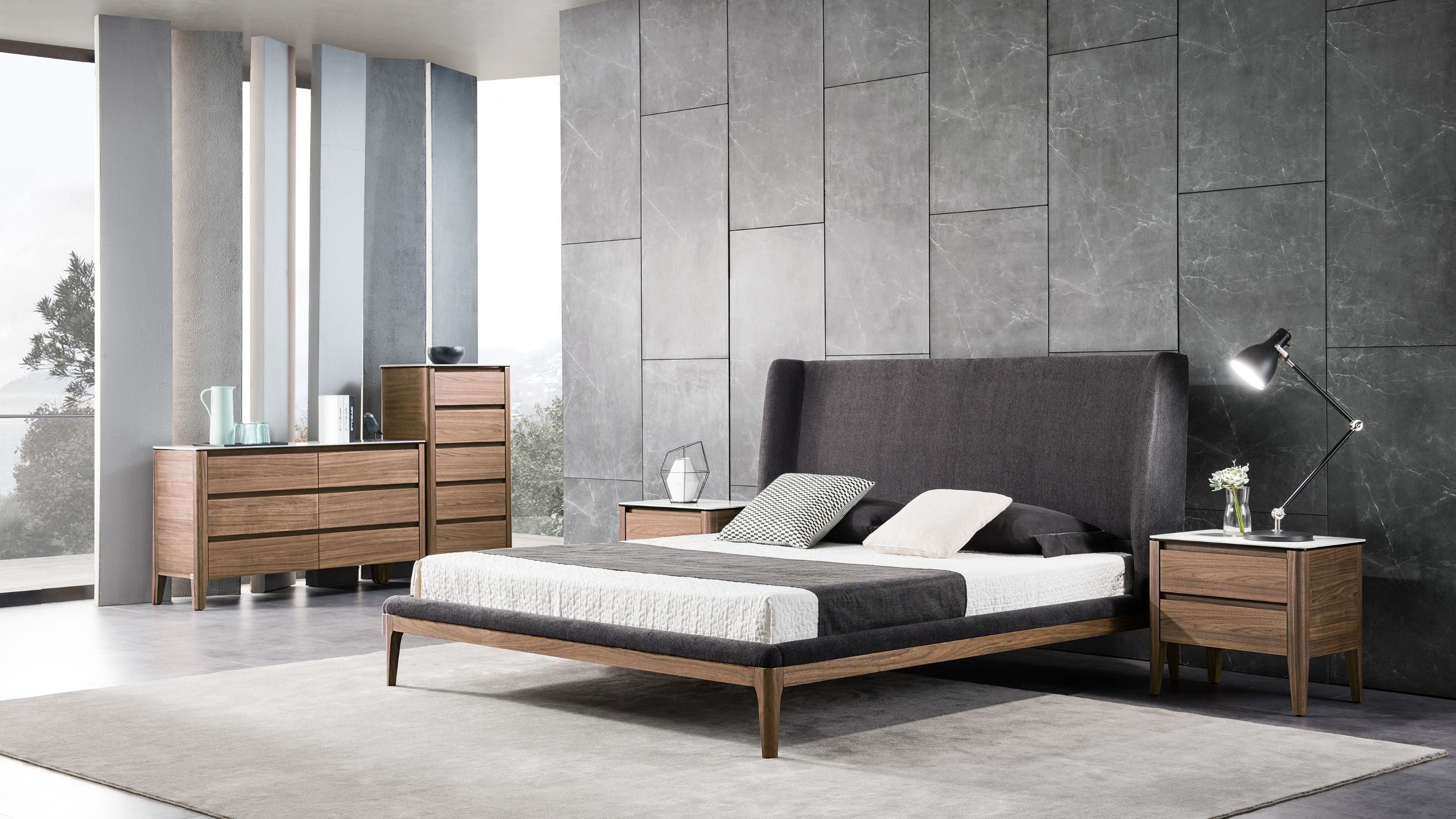 Combining resilient stone with the cozy comfort of American Walnut, the Alaska Bedroom cabinets are aesthetically pleasing and functional. The ceramic material is extremely durable and impervious, creating an optimal surface for furniture. Outfitted with soft-close storage drawers for plenty of storage, these come in two shades--Black Oak and American Walnut. Perfect for bedroom furniture in Melbourne, these cabinets blend durability with sleek design, making them a stylish and lasting addition to your space.