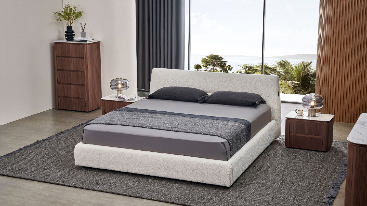 Elevate your bedroom with the sleek and modern Brooklyn Bed - a top-of-the-line designer bed backed by a 15-year warranty. Experience the ease of built-in USB-C Charging ports on the headboard for effortless phone charging. The luxurious Boucle material makes a fashion statement, with your choice of the discounted white color or the ability to customize with our wide selection of covers. Discover unparalleled craftsmanship with Gainsville - a renowned family-owned Melbourne business. From conception to creation, each step is meticulously crafted for the utmost caliber and excellence. Trust in a brand that is devoted to their process and offers extraordinary products.