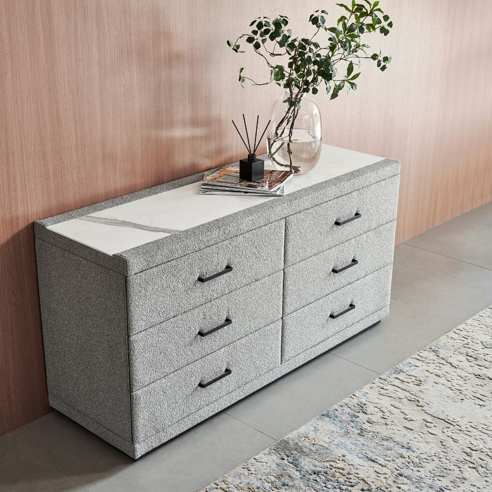 The G3 Series Dresser is designed to elevate your space, both aesthetically and practically. Add a calming vibe with its felt-lined drawers and a gentle rounded edge. Choose from brushed steel or satin black metalwork, plus pick from a variety of insert options for a stylish and long-lasting top finish. Get an even better deal when you pair with a Gainsville designer Bed - all cabinets will be a further 10% off!