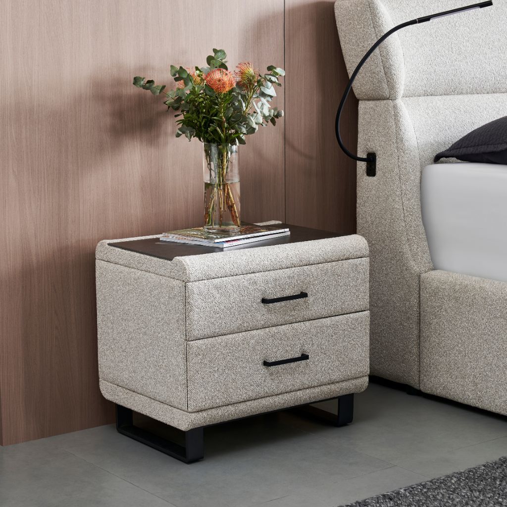 The G3 Series Bedside Table is designed to elevate your space, both aesthetically and practically. Add a calming vibe with its felt-lined drawers and a gentle rounded edge. Choose from brushed steel or satin black metalwork, plus pick from a variety of insert options for a stylish and long-lasting top finish. Get an even better deal when you pair with a Gainsville Bed - all cabinets will be a further 10% off!