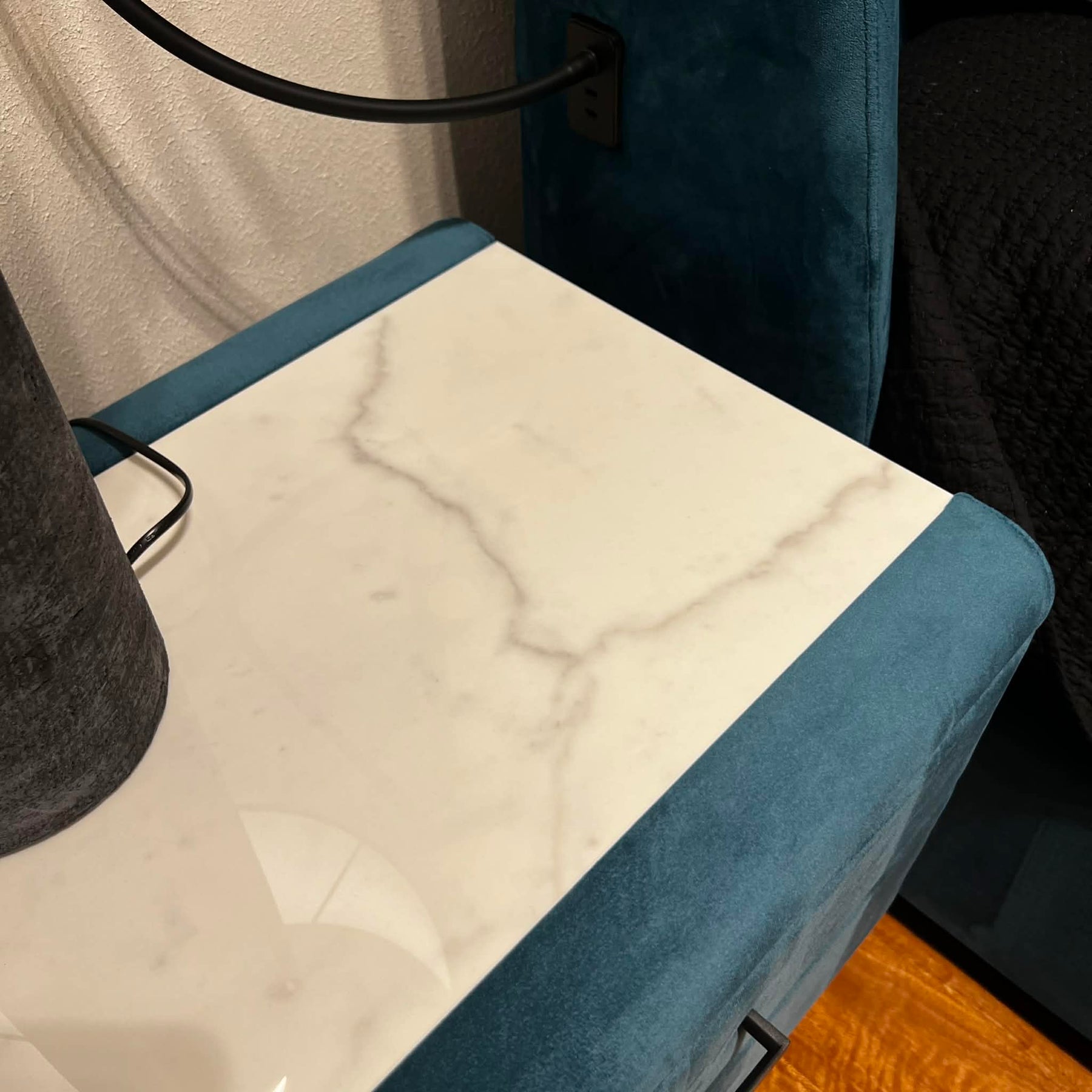 Complementing the bed are two G3 Bedside Tables, which lean into a sophisticated industrial-chic aesthetic. These units feature sleek Satin Black metalwork paired with high-end Venato Porcelain tops, offering a durable and elegant surface for nightly essentials. Currently on display at our Southbank Showroom in Very Good condition, this set is a perfect choice for those seeking a cohesive, high-fashion bedroom suite that prioritizes both texture and storage efficiency.