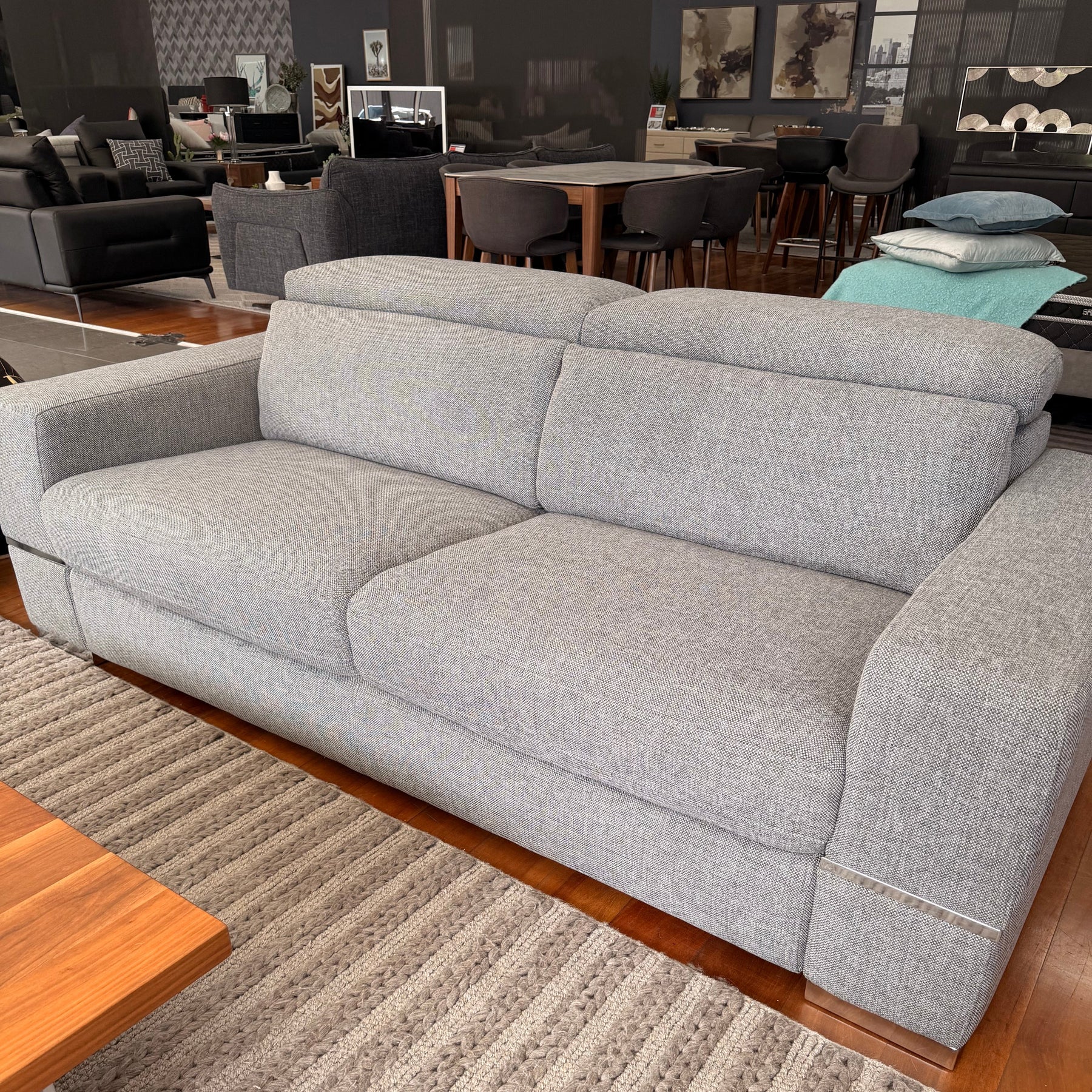 The Eden 2.5 Seat Fixed Lounge brings sleek modern comfort to your living space. Its elegant silver trim adds a refined touch, while adjustable headrests provide personalised support for added comfort. Upholstered in premium FA TLT-26 fabric, it offers a soft yet durable finish suitable for everyday living.