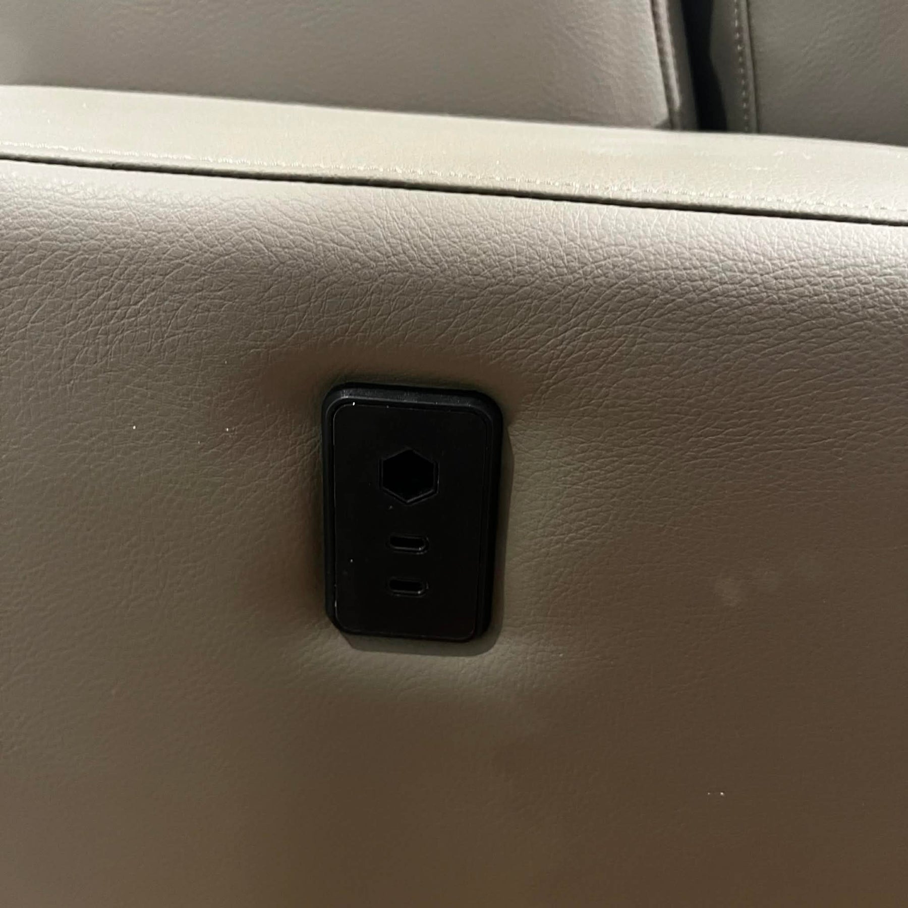 Integrated USB-C charging ports add a practical, forward-thinking touch — keeping your devices powered without the clutter of extra cords and adapters. The FD-BACH-48 upholstery is beautifully complemented by American Walnut trim detailing, adding depth, texture, and a refined natural accent to the overall design.