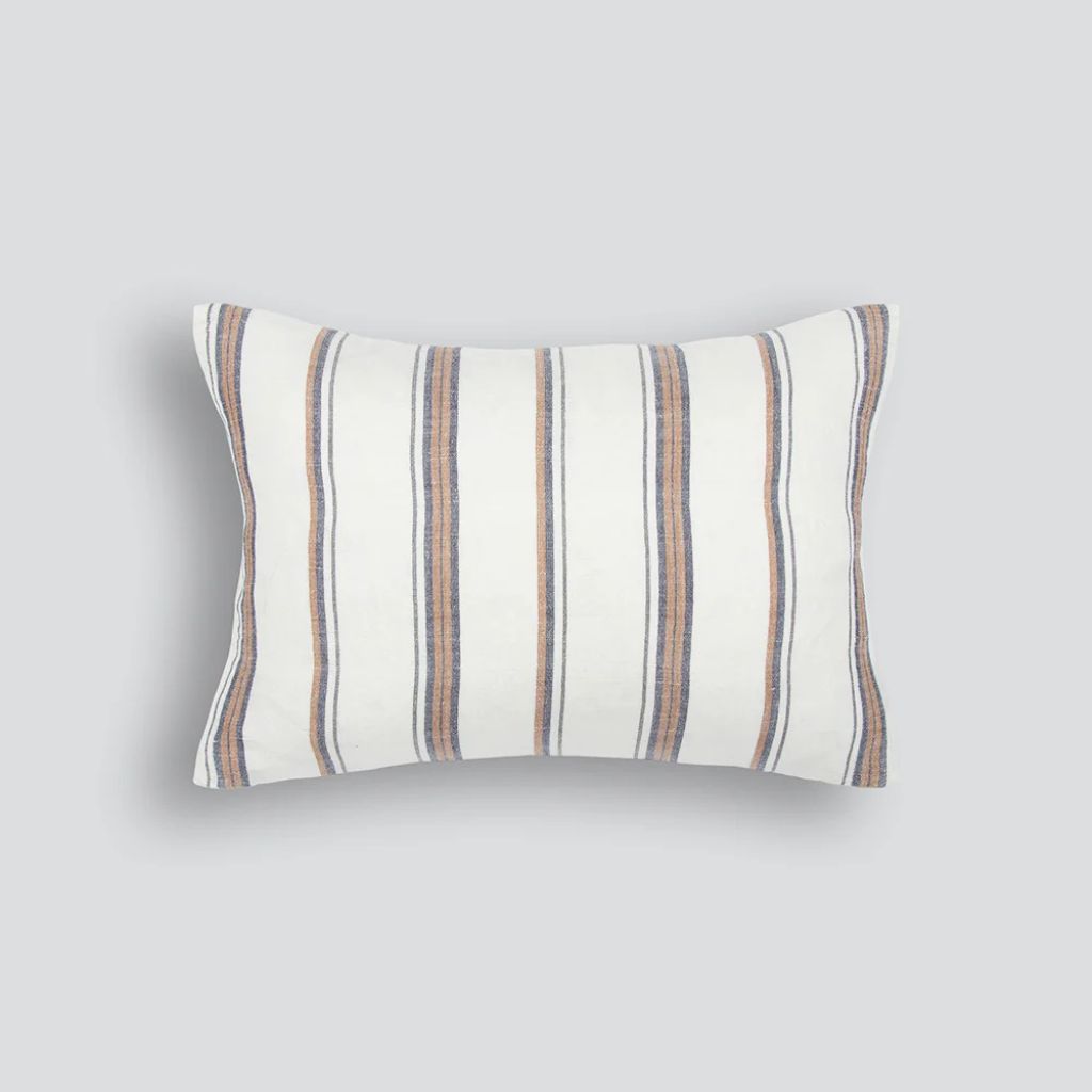 Inspired by the relaxed, coastal style of the Hamptons, this cushion will appeal to those wanting to create a timeless and sophisticated space. A gorgeous, handwoven linen/cotton stripe in hues of cobalt, ivory and tobacco, with a soft-washed finish.