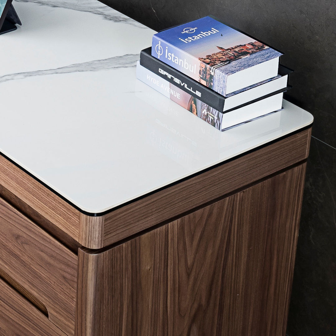 Combining resilient stone with the inviting appeal of American Walnut, this Desk is equal parts attractive and functional. The ceramic used is remarkably strong and non-absorbent. Whether you need storage space, the Desk can accommodate; featuring three drawers with soft-close technology. Comfort and convenience at your fingertips! Plus, it's now reversible--Left Side Facing or Right Side Facing, you pick! For an additional touch, a new timber option is available - Black Oak! Check out our office furniture range in-store. From modern desks to ergonomic chairs, we have everything you need for a productive and stylish office.