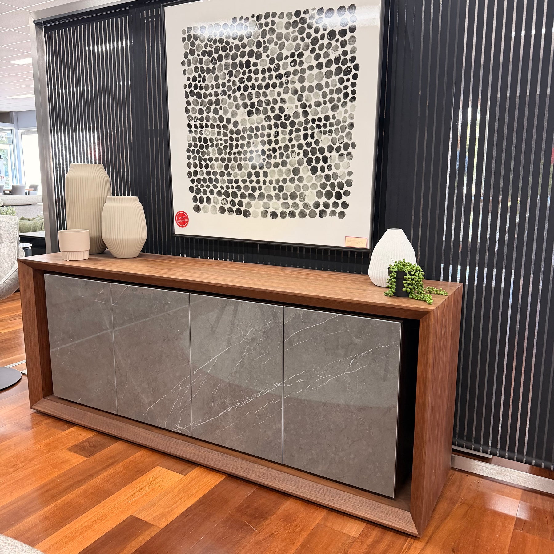 The Malibu Buffet in Concordia finish is a sophisticated storage solution that blends contemporary design with refined materials. Its clean-lined silhouette and elegant ceramic surface create a modern statement, perfect for dining rooms or open-plan living spaces.