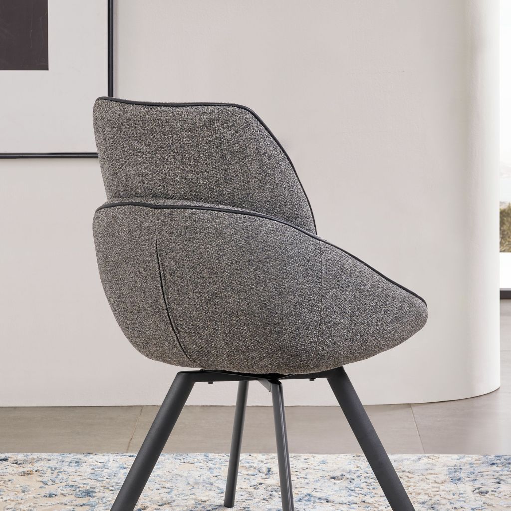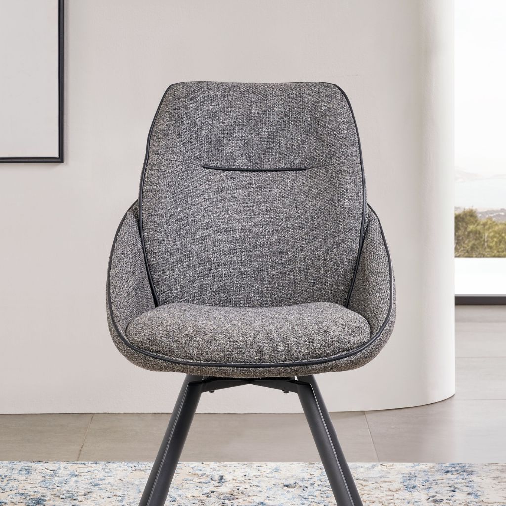 With a sleek black metal base, this chair combines stability with a contemporary aesthetic. The base complements the fabric upholstery, creating a versatile piece that suits a variety of dining room styles.