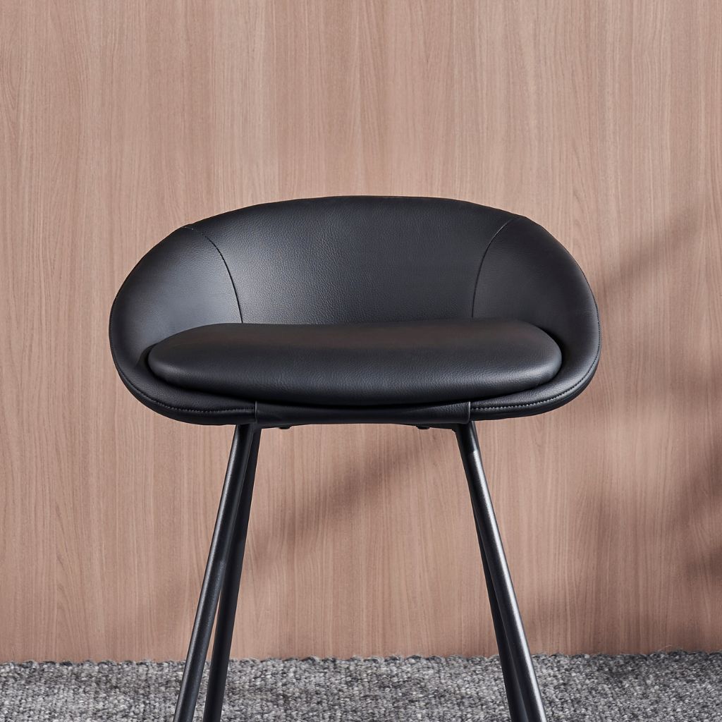The Oliver Barstool seamlessly blends refined style with ergonomic design. Its smooth black leatherette seat offers a chic and understated elegance, while the gentle curve of the backrest provides ergonomic support, making it as comfortable as it is stylish.