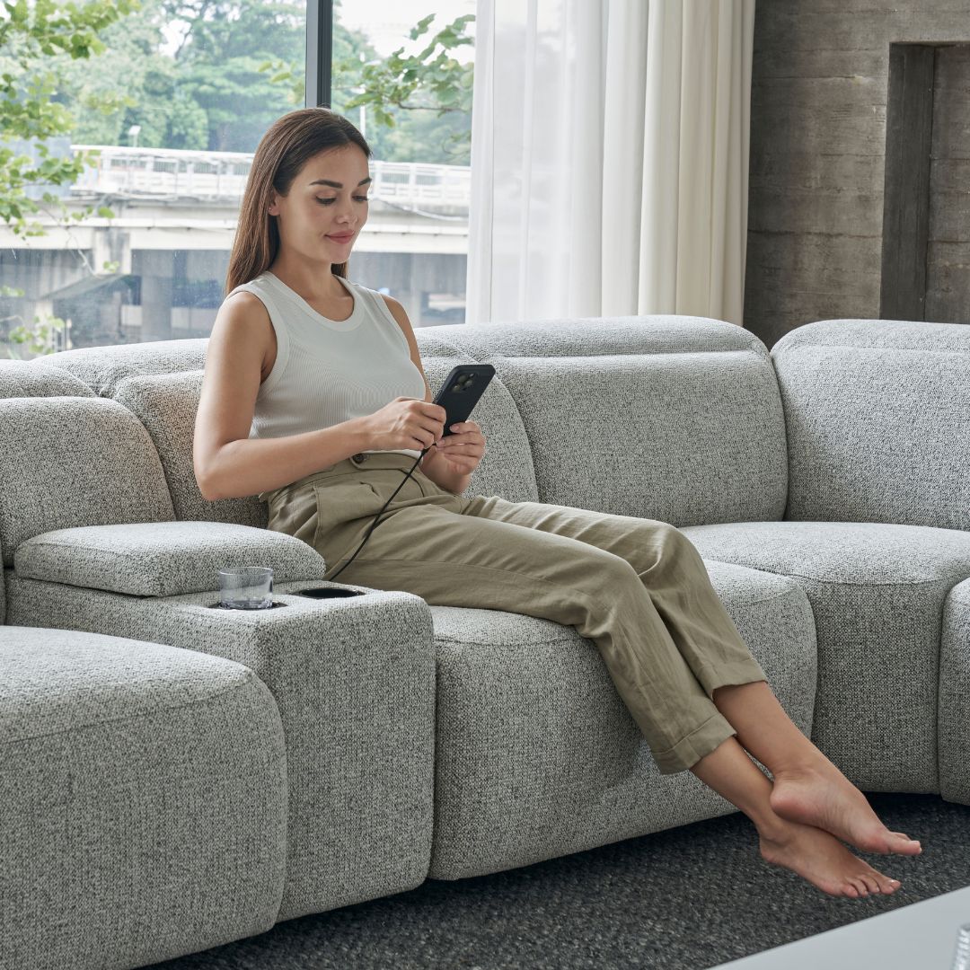 Experience the ultimate in style and comfort with the Bova Corner Sofa. Featuring dual-motor electric reclining seats, relaxation and comfort are just a button away. Personalize your sofa with a wide selection of leather and fabric options to match your home decor. Elevate your living space and embrace total relaxation with this luxurious electric recliner sofa. Visit our Melbourne furniture store to discover a variety of contemporary sofas.