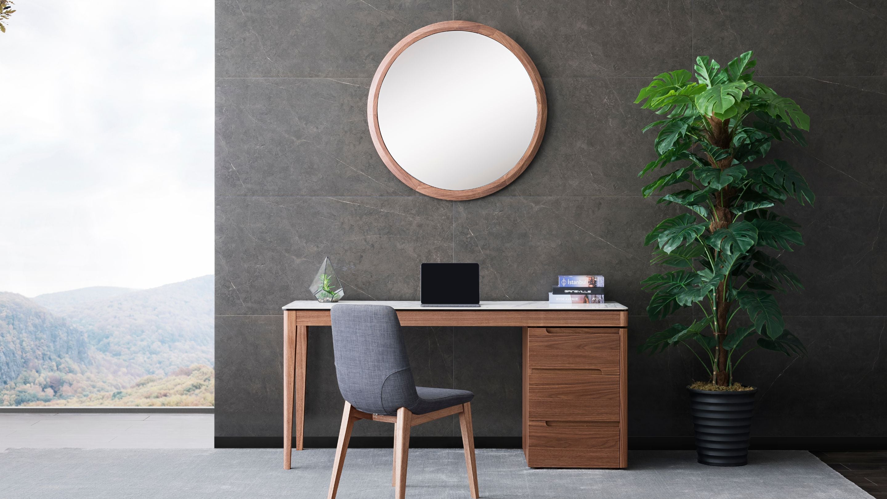 Combining resilient stone with the inviting appeal of American Walnut, this Desk is equal parts attractive and functional. The ceramic used is remarkably strong and non-absorbent. Whether you need storage space, the Desk can accommodate; featuring three drawers with soft-close technology. Comfort and convenience at your fingertips! Plus, it's now reversible--Left Side Facing or Right Side Facing, you pick! For an additional touch, a new timber option is available - Black Oak! Check out our office furniture range in-store. From modern desks to ergonomic chairs, we have everything you need for a productive and stylish office.
