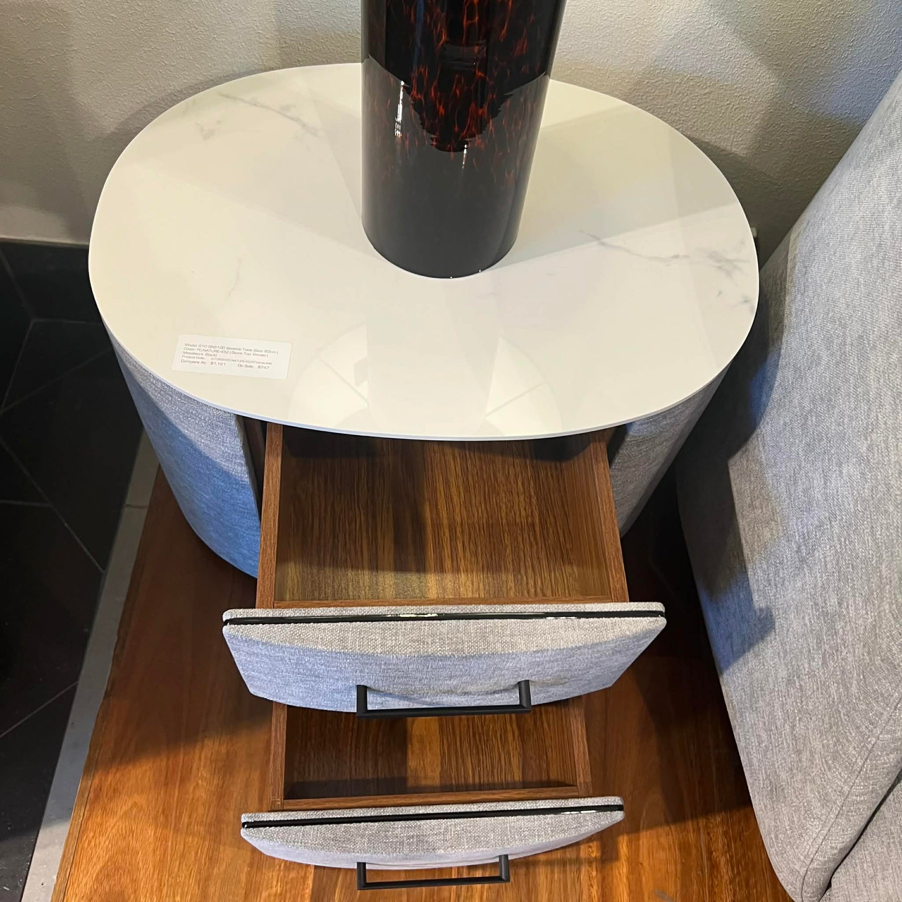 Complemented by the G10 bedside tables and dresser, this collection showcases sleek satin black metalwork and stunning Bianco porcelain tops, adding contrast and a touch of luxury. The dresser and bedside tables are fitted with soft-close runners, ensuring smooth, quiet functionality for everyday use.