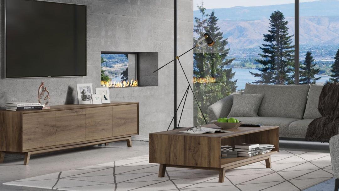The Eve Collection features a curated selection of premium living and storage furniture, including TV units, buffet cabinets, coffee tables, and display units. Designed with a minimalist profile and a warm American Walnut finish, the Eve range blends seamlessly into both contemporary and classic interiors.