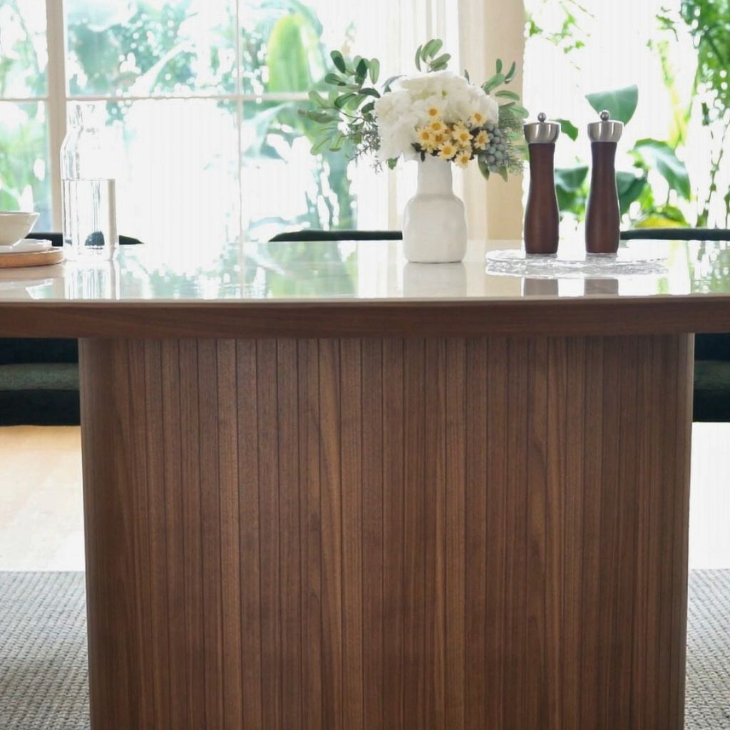 The Ava Dining Table brings timeless elegance to any dining space with its stunning combination of materials. Available in either walnut or black oak, both versions feature a luxurious Bianco stone top, offering a perfect blend of natural beauty and modern design. Ideal for both formal and casual dining, the Ava table is a sophisticated centerpiece for your home.