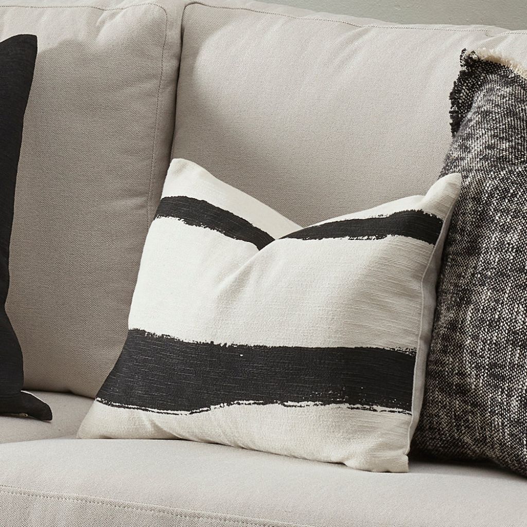 A striking hand-painted, abstract print on heavy cotton, Brooks will delight Monochromatic lovers and coordinates beautifully with Brooks.