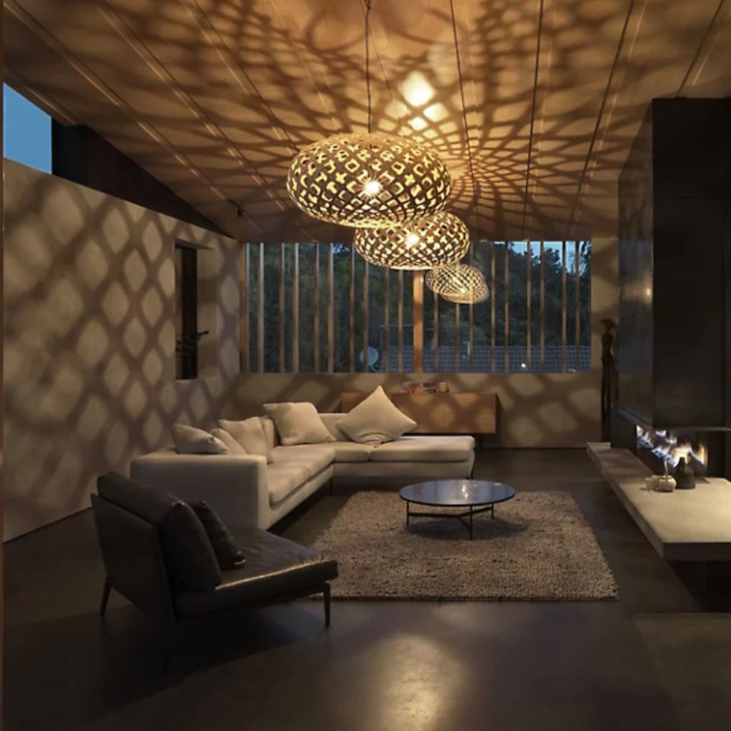 The intricate design of the Kina light creates stunning patterns, casting soft shadows across the room. Perfect for living spaces, this piece adds a warm, inviting ambiance that transforms the atmosphere, making it both stylish and soothing.